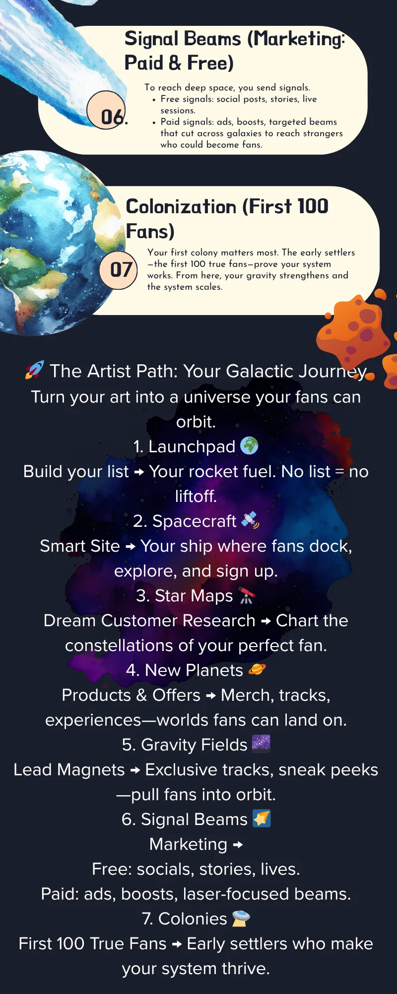 Every artist is a cosmic explorer. Your mission isn’t just to launch music into the void—it’s to create a universe where fans gather, orbit, and thrive. Just like space missions, success requires careful planning, strong systems, and powerful signals.