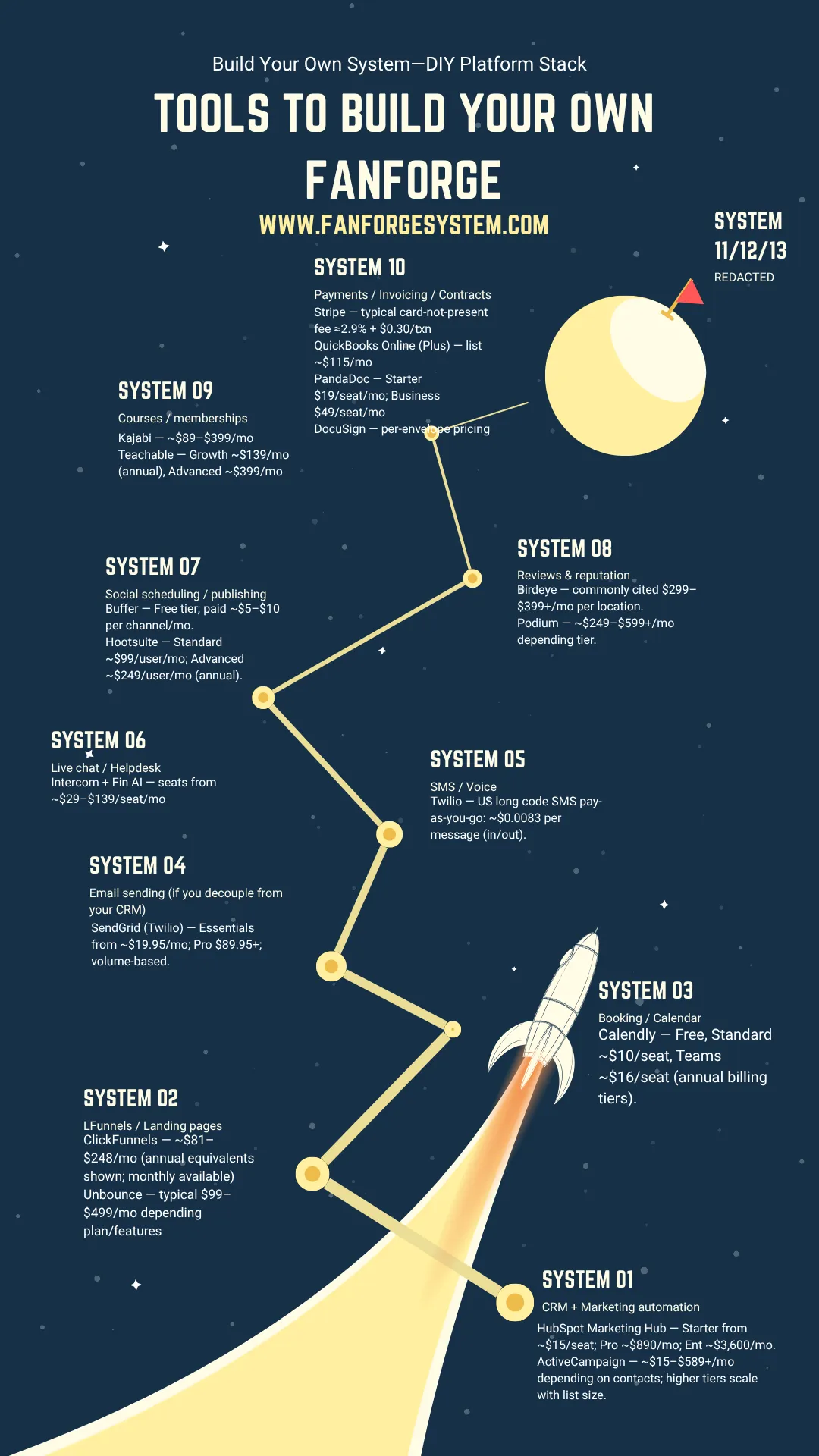 If you tried to rebuild FanForge from scratch, you’d be paying for—and maintaining—15+ different logins, APIs, and dashboards just to do what FanForge does out of the box.